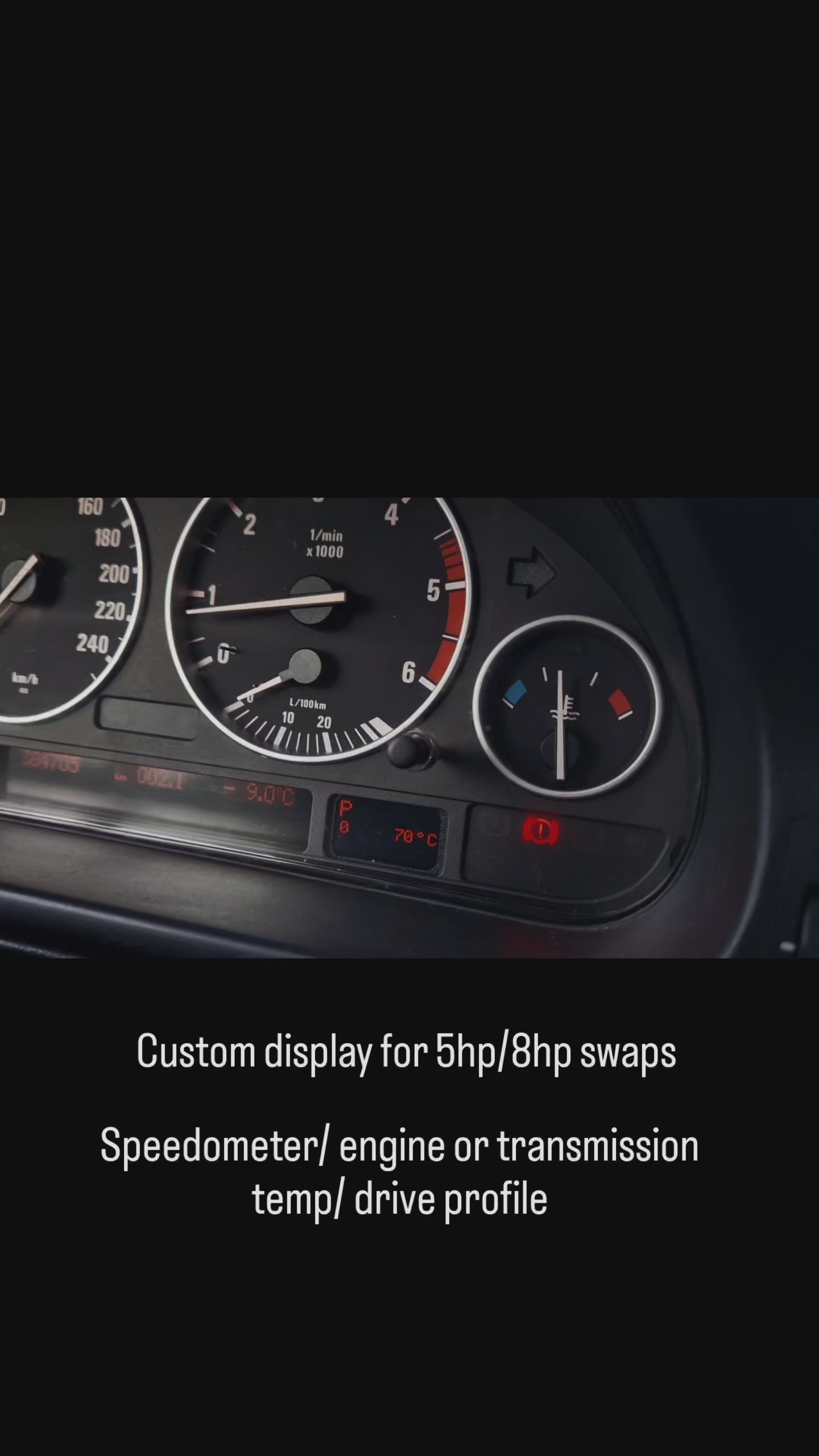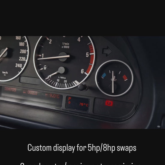 The MFD8 is purpose-built for BMW CAN architectures and supports both original and aftermarket transmission control systems. It communicates directly with your drivetrain CAN BUS and presents the data in a format inspired by original BMW cluster design.